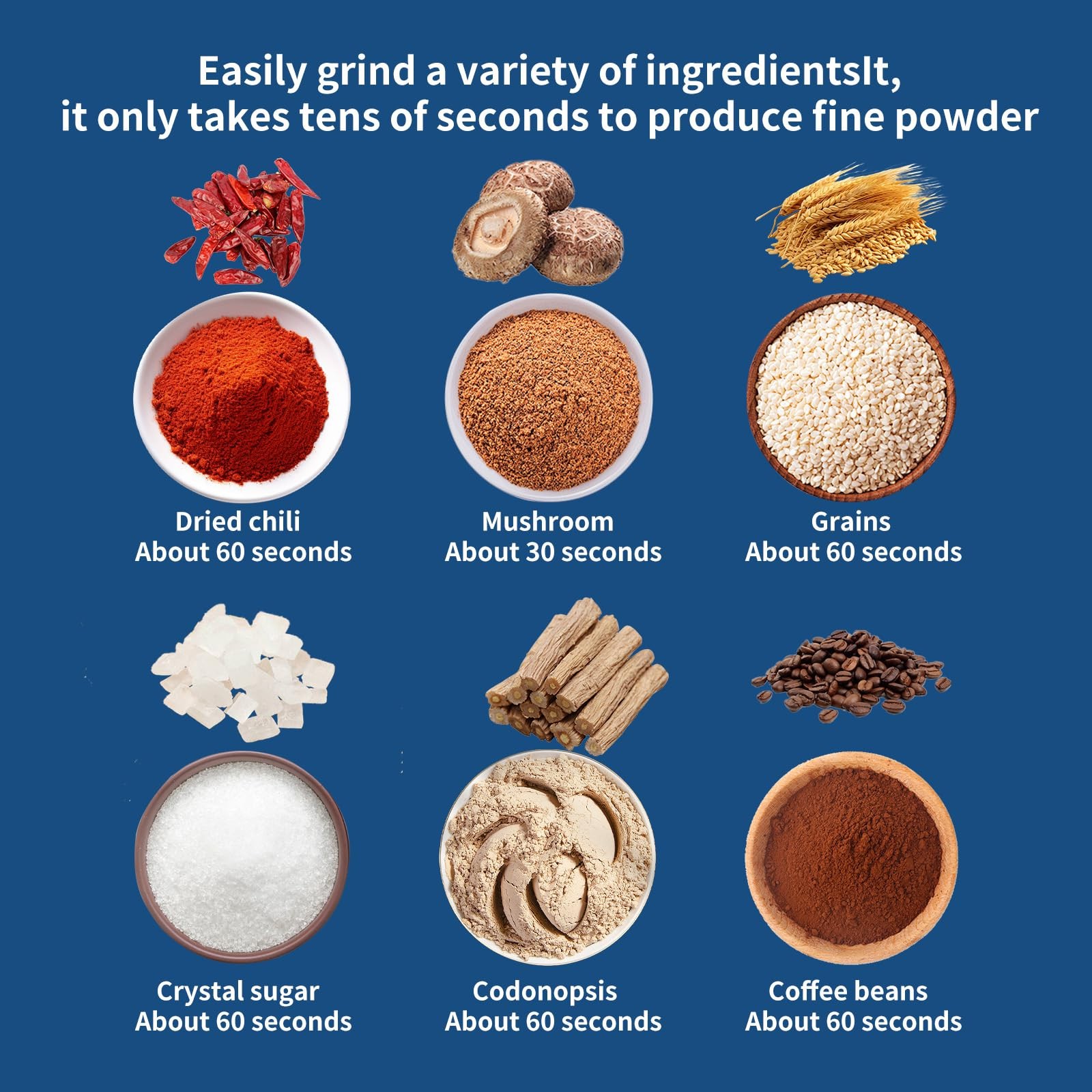 - কফি, এলাচ, মশলা, বাদাম ও ড্রাইফুড গ্রাইন্ডিং